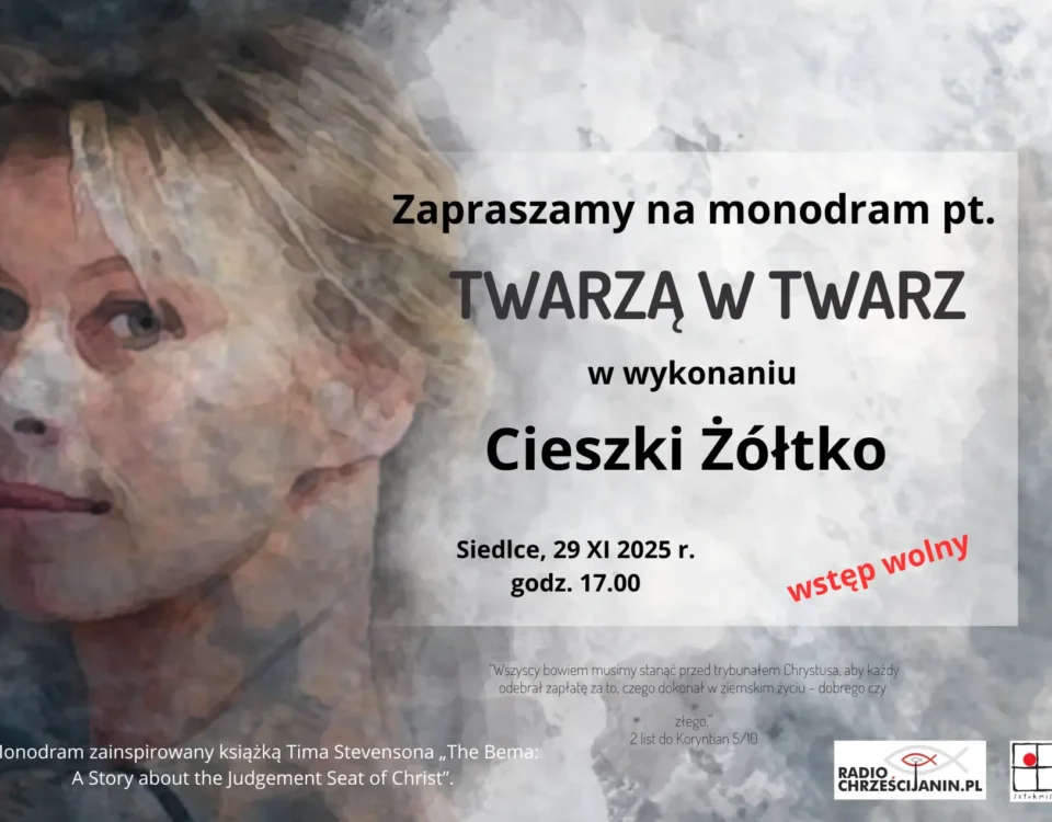 “TWARZĄ W TWARZ” to monodram zainspirowany książką Tima Stevensona „The Bema: A Story about the Judgement Seat of Christ” Spektakl, który poprawia duchową optykę, kalibruje i […]