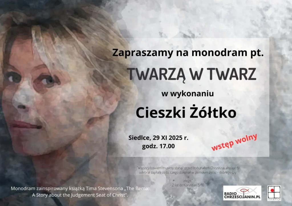 “TWARZĄ W TWARZ” to monodram zainspirowany książką Tima Stevensona „The Bema: A Story about the Judgement Seat of Christ” Spektakl, który poprawia duchową optykę, kalibruje i […]