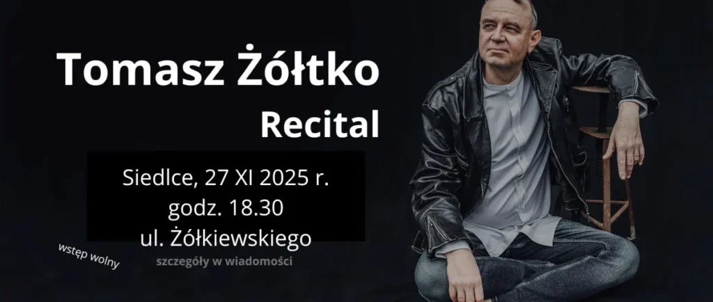 27 listopada (czwartek) w Siedlcach będzie miał miejsce recital Tomka Żółtko. Data koncertu: 27 XI 2025 (czwartek) Godz.: 18.30 Miejsce: W sali konferencyjnej (wejście od) ul. […]
